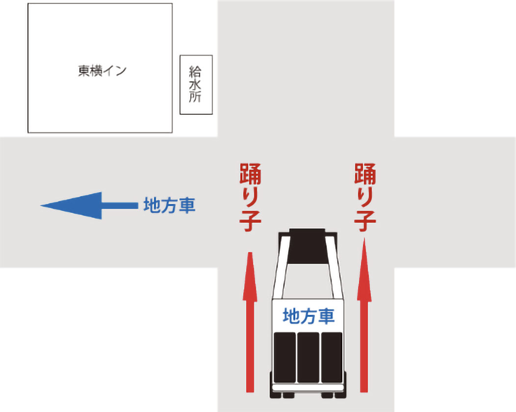 地方車は止まりますが、踊り子はそのまままっすぐに踊り抜けて下さい。 |